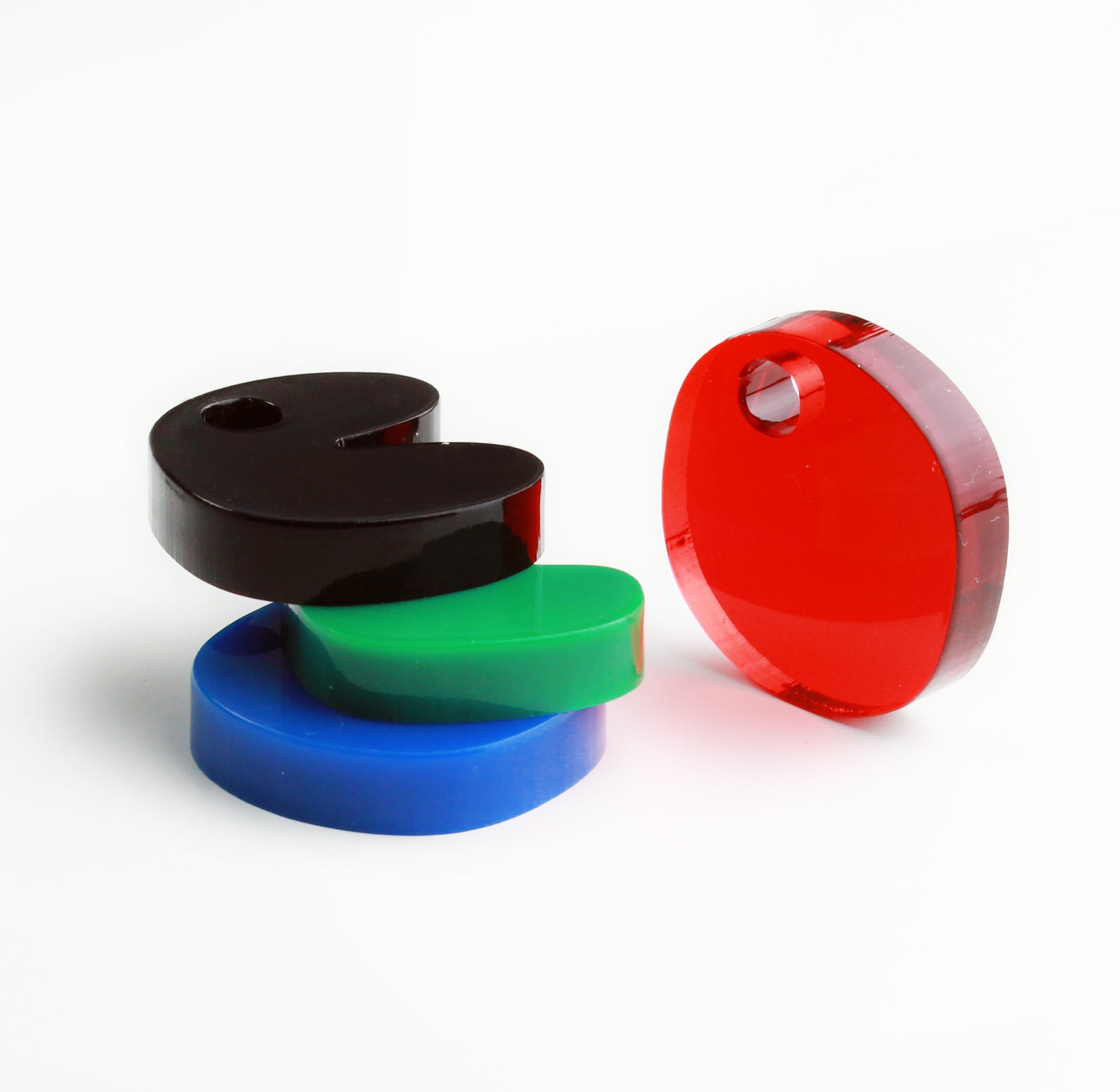 These key chains are 100% made of leftover material collected by PyraSied Xtreme Acrylic.