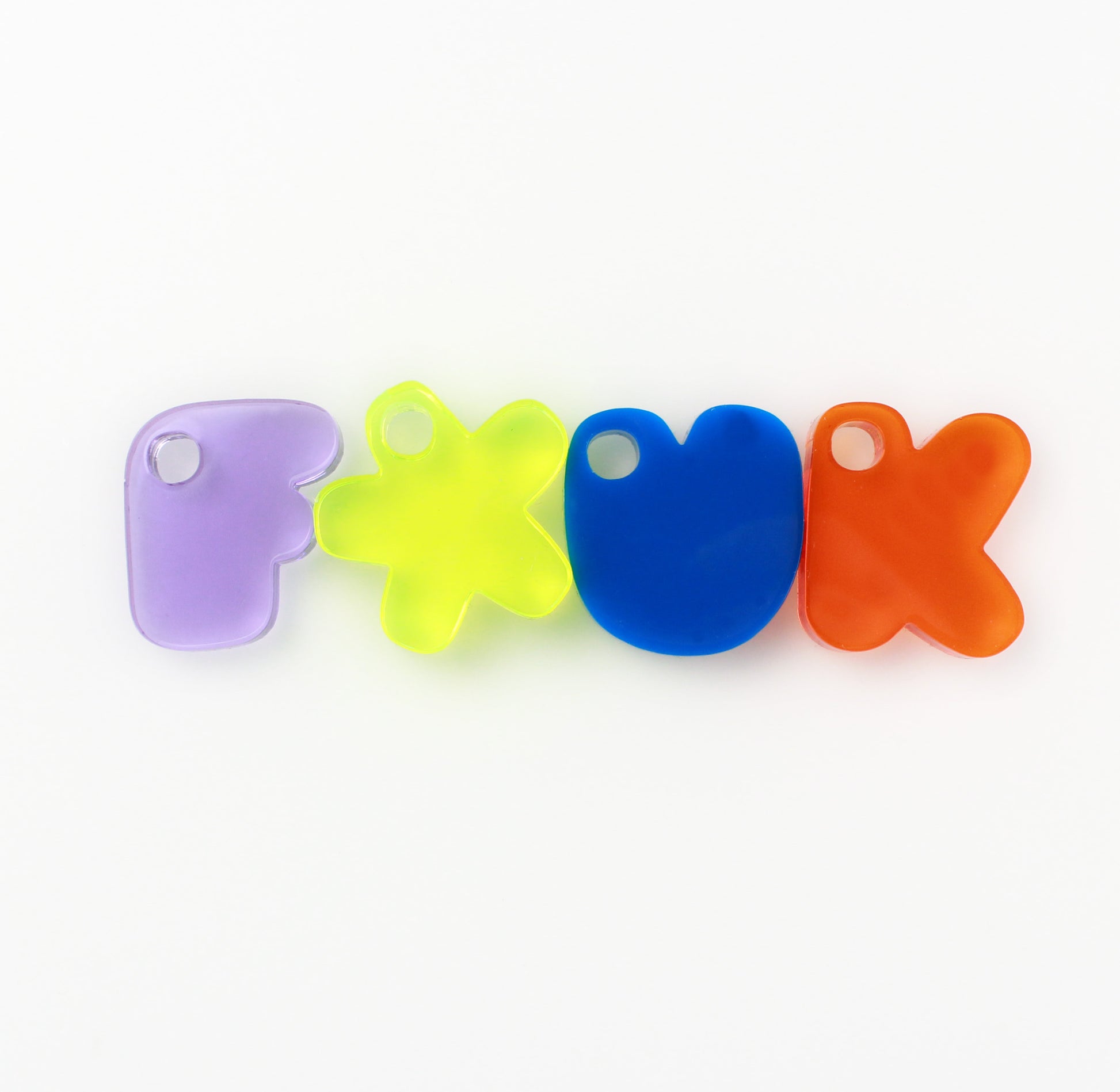 mo man tai designed a type for those key chains that is soft, playful and – we hope – makes everyone happy. Every character works also as an abstract form by itself – together they form a funny “4-letter-word”.