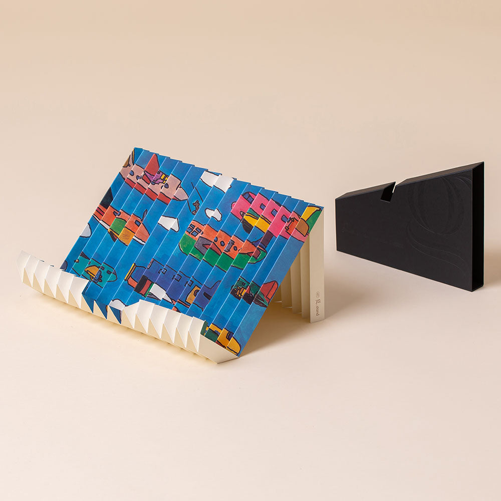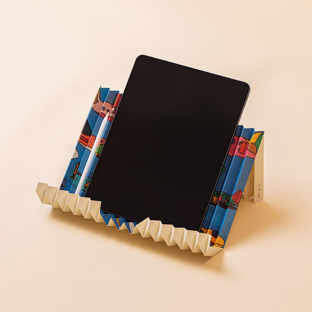 The product is completely free from chemical processes such as glues and coatings and is designed to return to nature at the end of its life. Origamic structure allows a single sheet of recycled paper to become a product without any chemical processing. This attractive folding technology allows you to withstand books up to 5kg and helps to flip the pages easily.