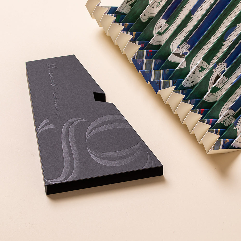 The product is completely free from chemical processes such as glues and coatings and is designed to return to nature at the end of its life. Origamic structure allows a single sheet of recycled paper to become a product without any chemical processing. This attractive folding technology allows you to withstand books up to 5kg and helps to flip the pages easily.