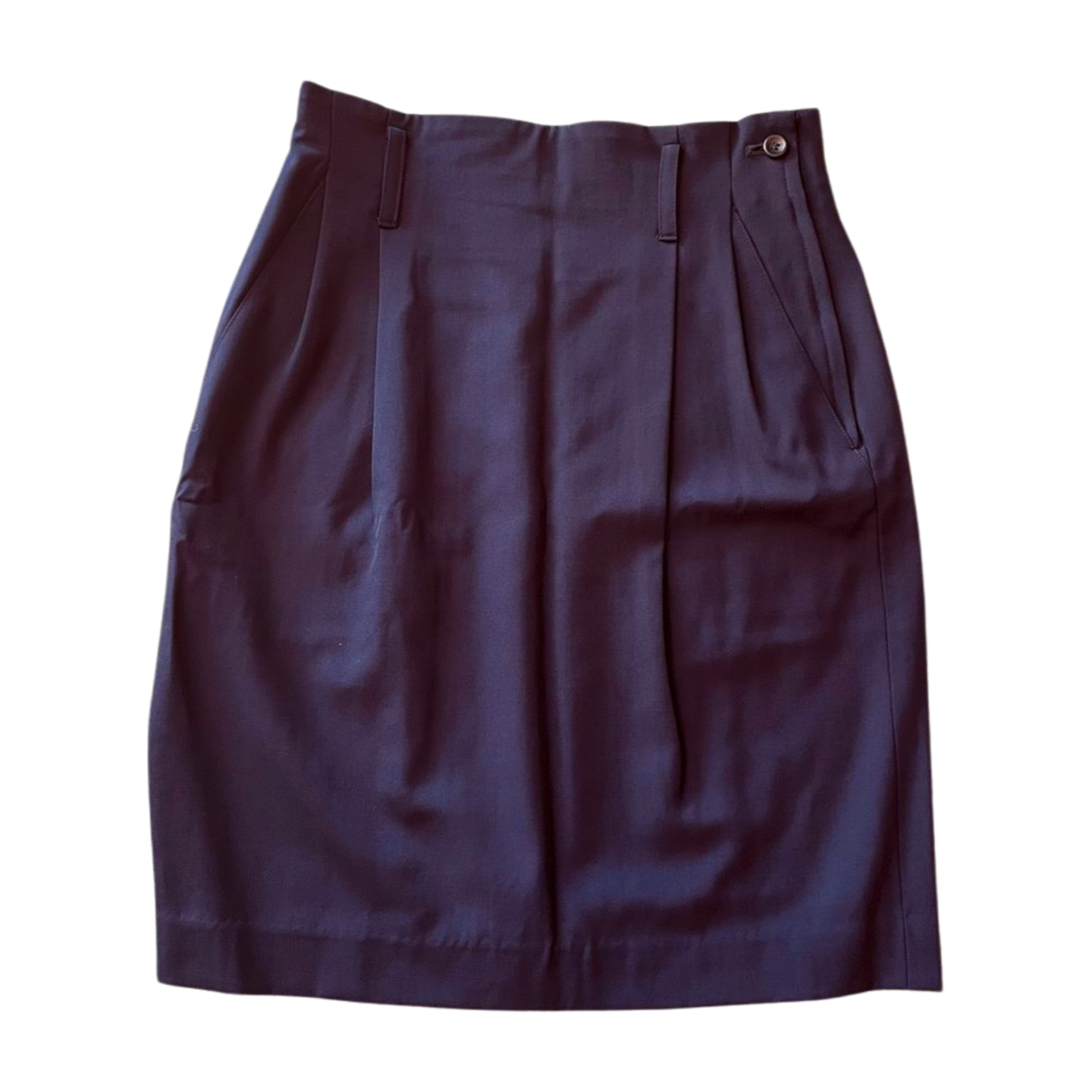 Tailored mini skirt in dark navy wool twill with lots of details: