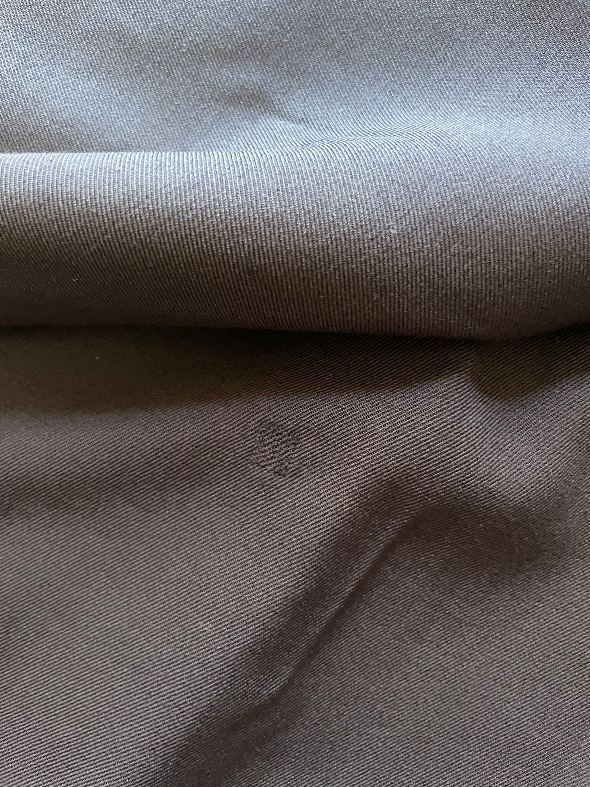 Darning is a disappearing technique that uses a woven garment's own fibre with a needle and interweave it back to self, using the same weaving pattern, in this case, a twill. It's done by hand and takes long hours and requires good eyesight. The result is perfect and artful. In Japan and Asia, darning is traditionally used for repairing garments and textiles. Not many know how to do it any more. In Hong Kong, if lucky to find a Shifu who knows how to do darning, it costs hundreds of dollars per mm based on the hole size.