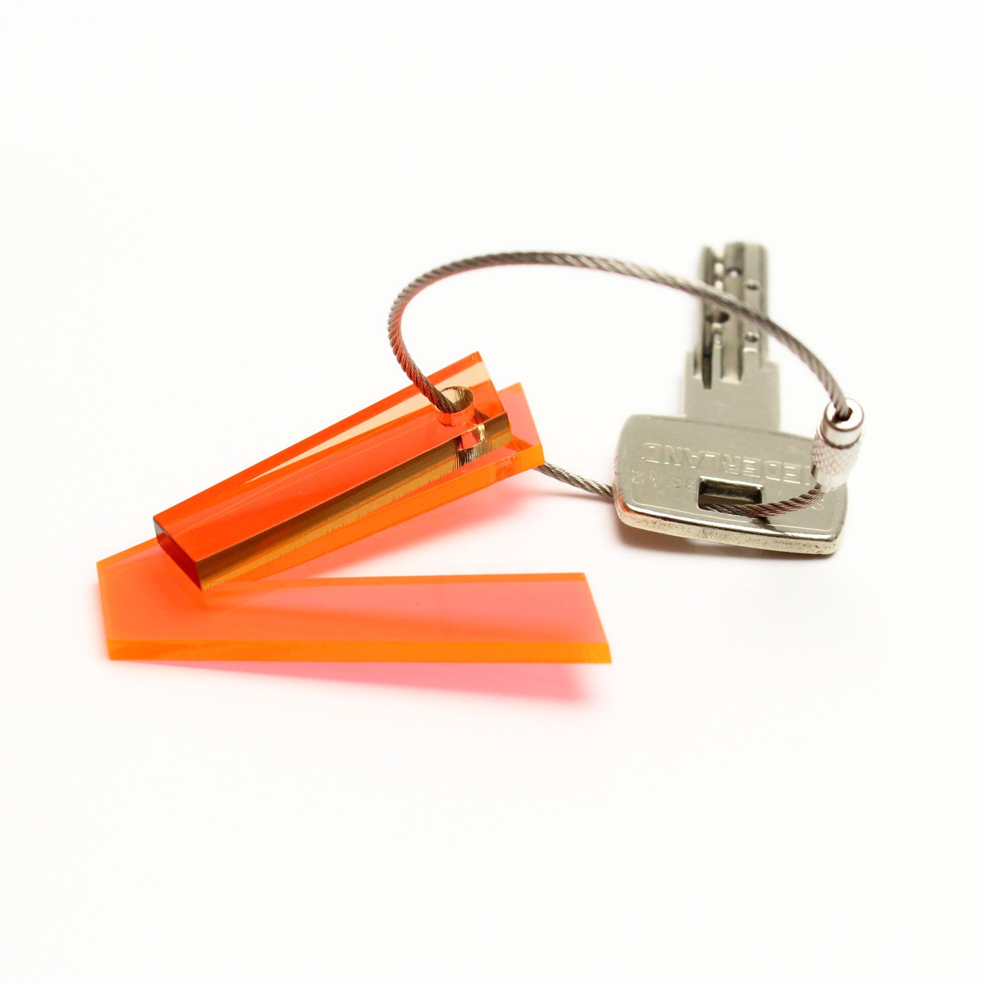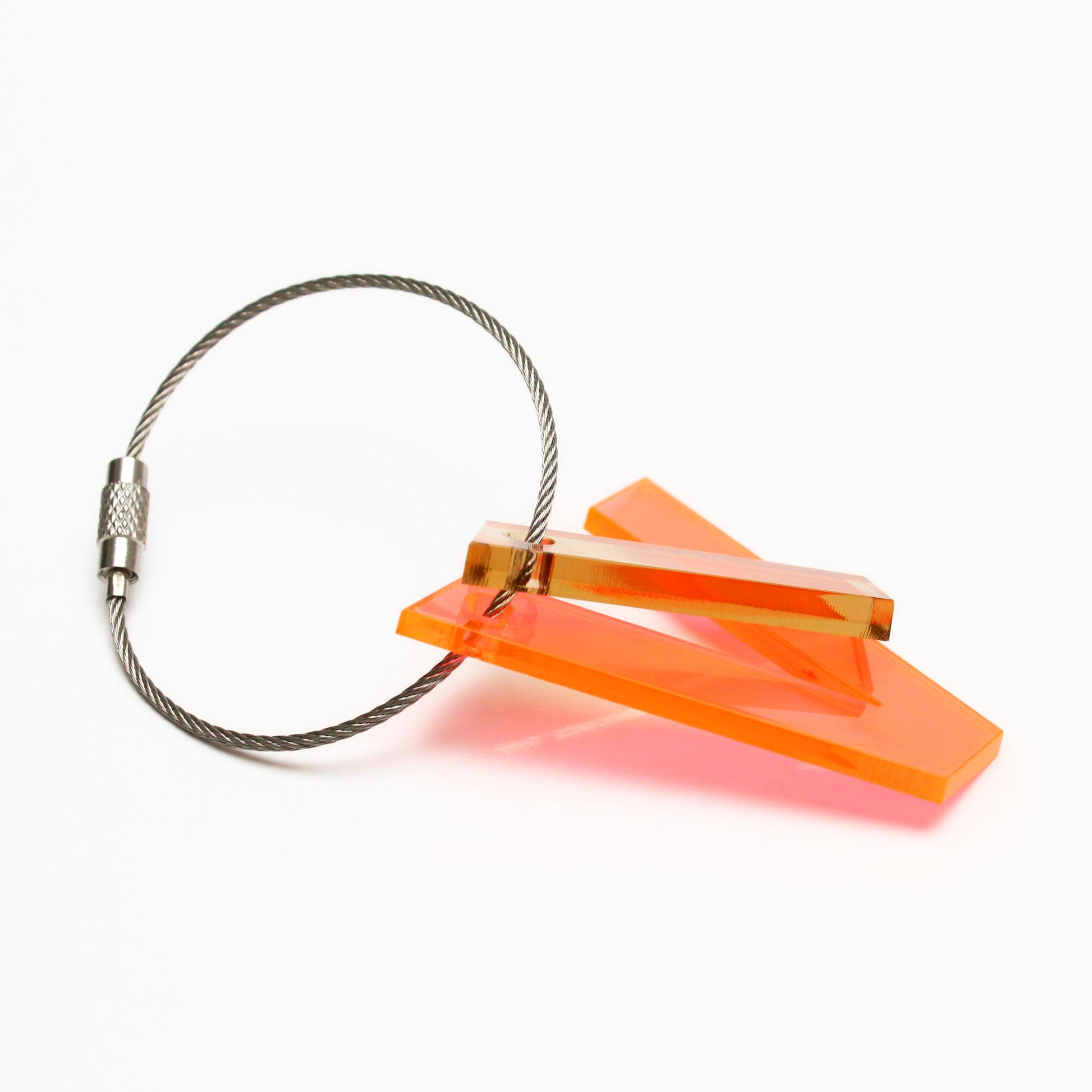 These key chains made from different acrylic leftovers; mounted on a stainless steel wire, add a playful element to your keychain.